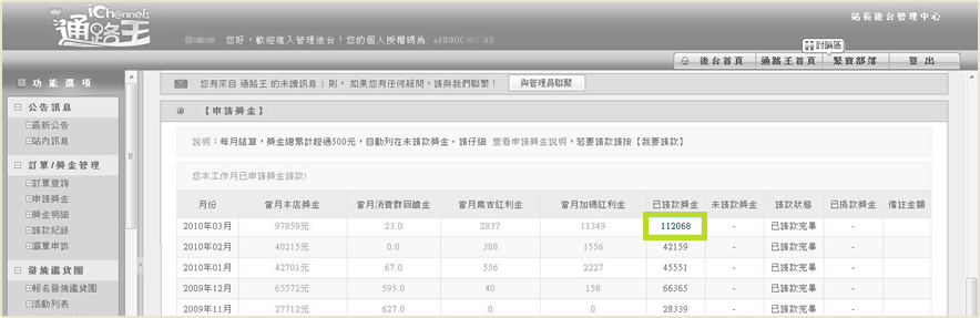 目前通路王每月獎金超過五百元即可提領(請以網站公告為主)